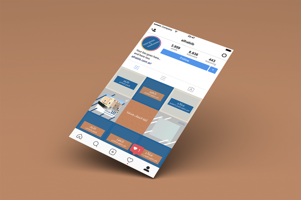 يعمل مشبك كشريك تسويقي وإبداعي لشركة الحبيب العقارية ويشمل إطار العمل تطوير الاستراتيجيات الرقمية والمحتوى٫ تصاميم الشبكات الإجتماعية والنشر والردود وخدمة العملاء بالإضافة لدعم الهوية والاستشارات.