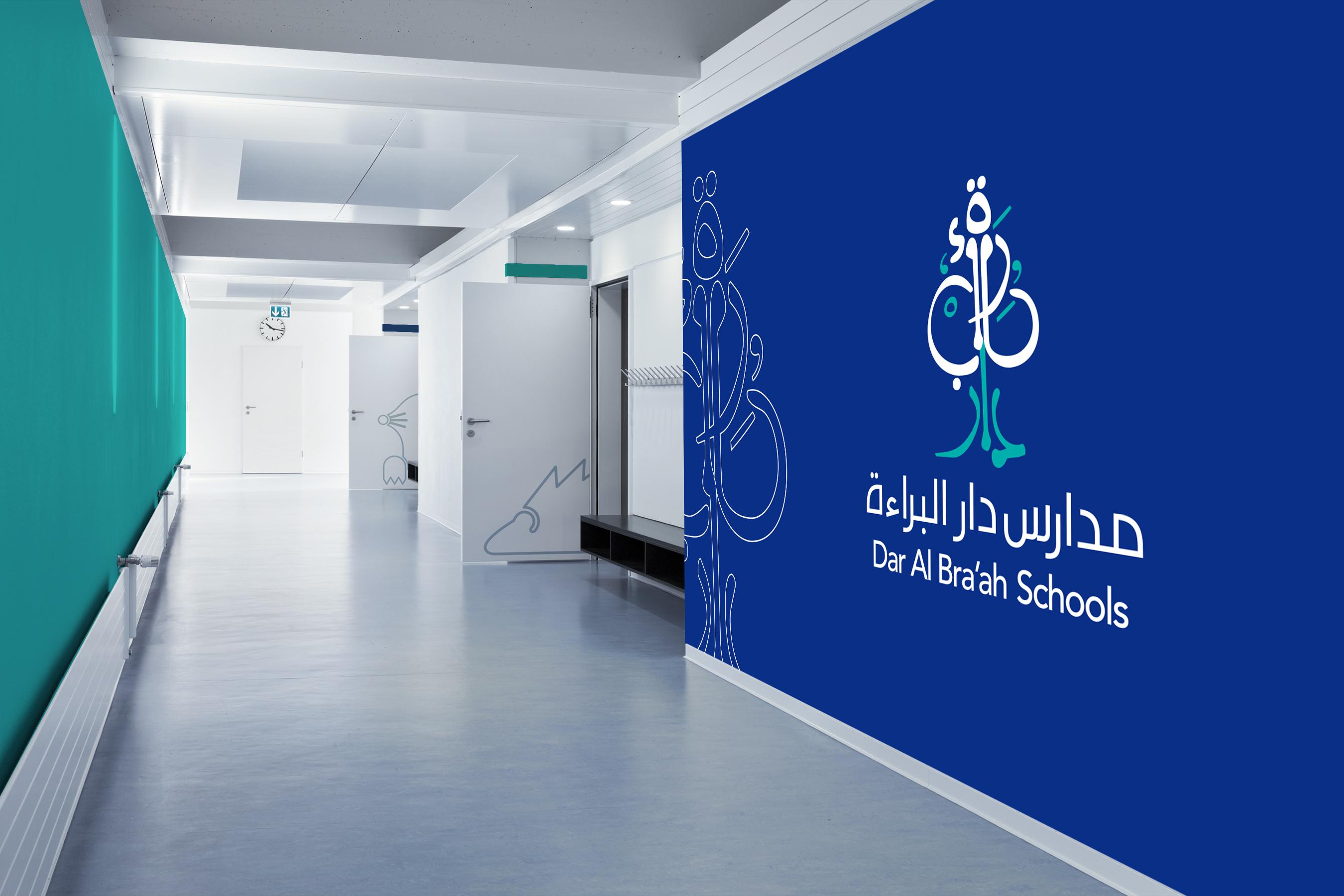 شعار خطي يبرز الهوية العربية من خلال تشكيل حروف كلمة دار البراءة لتكون شكل الشجرة، ولارتباط الشجرة بالنمو والثراء والمعرفة والعطاء.