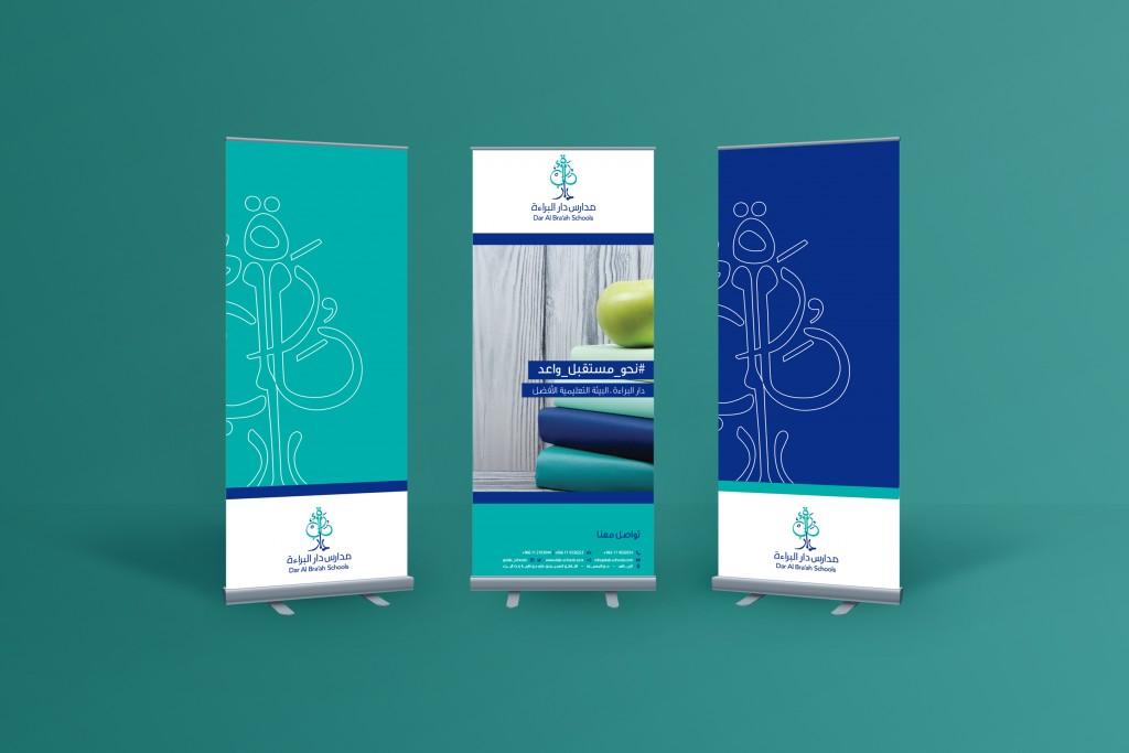 شعار خطي يبرز الهوية العربية من خلال تشكيل حروف كلمة دار البراءة لتكون شكل الشجرة، ولارتباط الشجرة بالنمو والثراء والمعرفة والعطاء.